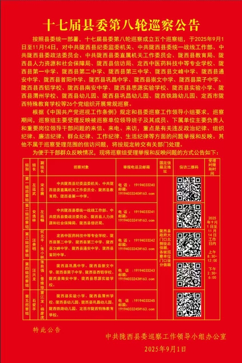 十七届县委第八轮巡察公告